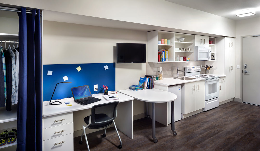Student housing in the heart of the University Village development adjacent to UBCO campus.